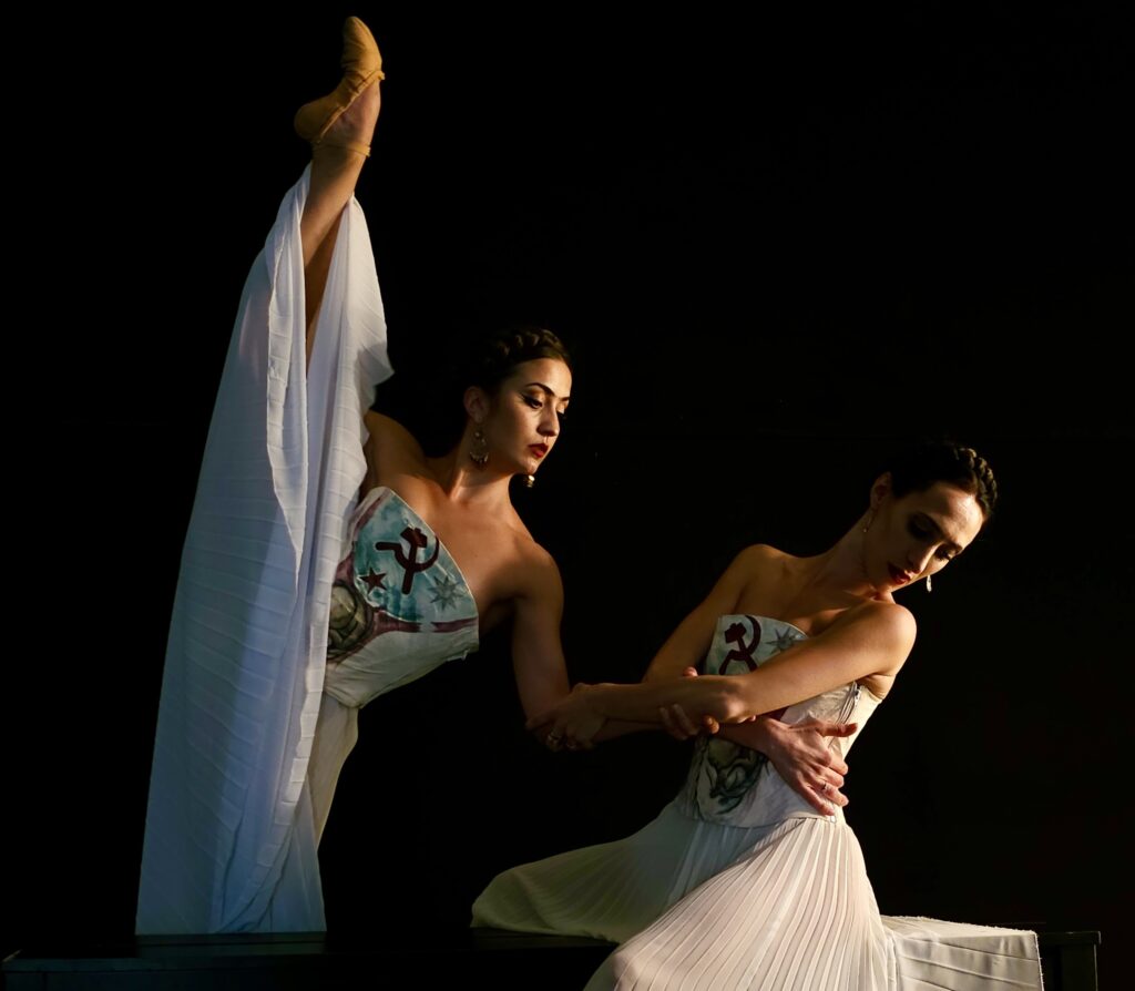 Das hat eine Sogkraft zur Folge, auf die man sich getrost einlassen darf – auch wenn das sofortige Zuordnen bestimmter Figuren wie der des Vaters (Martin Segata), des russischen Revolutionärs Leo Trotzki (Sprungwunder Mitwuro Ito) oder der Tänzerin im schwarzen Kleid als Tod (Sayumi Nishii) nicht immer ganz leichtfällt. Valga beherrscht die Kunst des „Etwas-Passieren-Lassens“ aber ganz vorzüglich. Seine Nebenfiguren führt er meist nur kurz szenisch ein, manchmal bloß im Hintergrund einer rasanten Ensemblepassage. Da lässt sich schon mal etwas übersehen. Wenig später stehen die Tänzerinnen und Tänzer dann plötzlich im Zentrum und überwältigen das Publikum, indem sie je nach Rollentypus famos springen, jazzig steppen oder ihre Hüften sanft androgyn schwingen. Der Kubaner Cosme Tablada Moreno ist eine charmante Überraschung in seiner (Travestie-)Rolle als Josephine Baker, der man eine Amour mit Kahlo nachsagt.