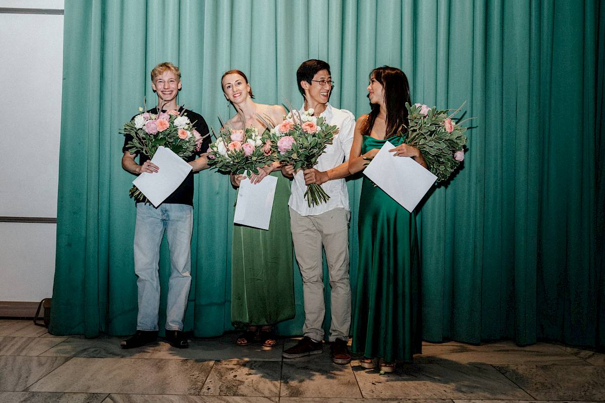 Die feierliche Preisverleihung des Tanzpreises 22/23 fand im Rahmen der großen Spielzeitabschluss-Party im Vortragssaal des Kunsthauses Zürich am 23. Juni 2023 statt. Ausgezeichnet wurden Elena Vostrotina (Ballett Zürich), Wei Chen (Ballett Zürich), Greta Calzuola (Junior Ballett Zürich) und Lukas Simonetto (Junior Ballett Zürich).