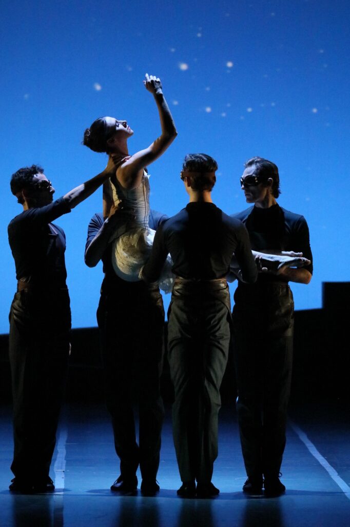 Doch in „Le Parc“ regiert noch eine weit mysteriösere, mechanisch wie ein Uhrwerk tanzende Macht. Severin Brunnhuber, Nikita Kirbitov, Sava Milojević und Zachary Rogers geben ein fantastisch-schematisiertes Kleeblatt von Gärtnern ab. Einzig Madison Young kommt in einer traumwandlerischen Sequenz mit ihnen, ihrem speziellen Bewegungsvokabular und ihrem vom Band zugespielten Klangkosmos voller Geräusche und Stimmen (Goran Vejvoda) in Kontakt. Für sich isoliert leiten sie alle drei Akte des pausenlosen Balletts ein und beschließen das Stück. Entfernt sind spielende Kinder zu hören. Dieser Abend ist ein Geschenk – wegen Mozarts zutiefst menschlicher Musik, wegen Preljocajs keineswegs in die Jahre gekommener Neuinterpretation der französischen Tanzklassik und nicht zuletzt wegen den wunderbaren Interpreten des Bayerischen Staatsballetts.